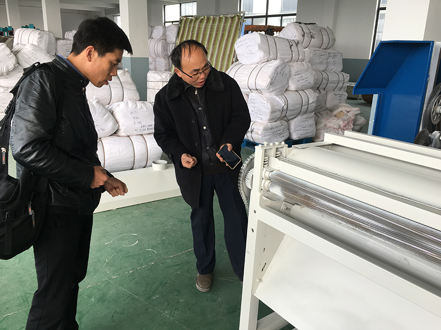 ▲徐工為李總介紹開松梳理一體機設備