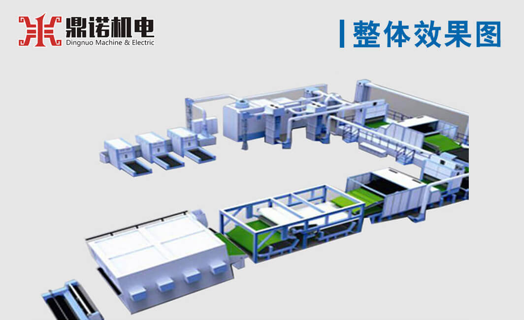 水刺非織造布生產線是將高壓微細水流噴射到一層或多層纖維網上,使纖維相互纏結在一起,從而使纖網得以加固而具備一定強力,該生產線生產的產品強度高,高吸濕、手感柔軟,不損傷纖維、外觀接近傳統紡織品。具體配置如下: